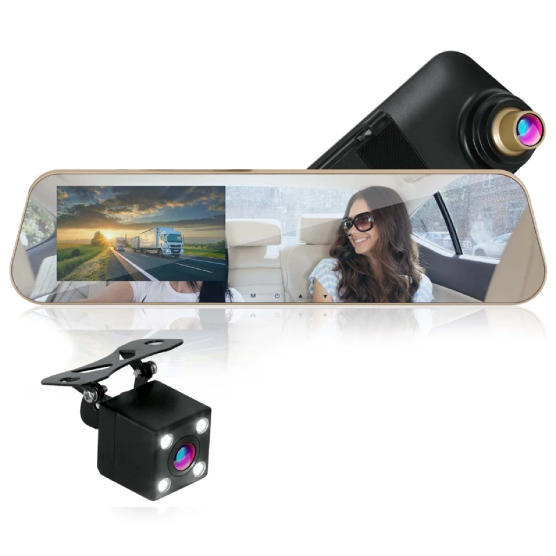 HD 1080p Touchscreen Vehicle Dual DVR Dash Cam – Camera & Monitor System with Waterproof Backup Cam, Night Vision, 4.3’’ -inch Display