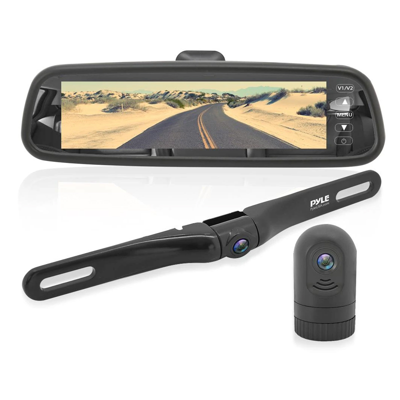 HD Video Recording System with Rearview Mirror Monitor, 7.4’’ -inch LCD Display, Compact Dash Cam, Rear-View Backup Camera